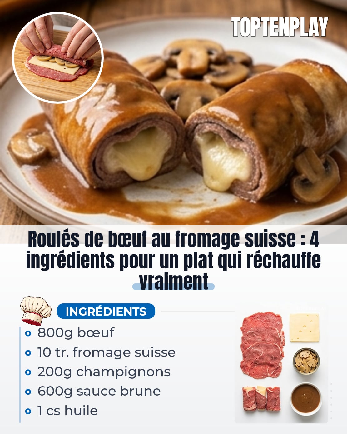 « Roulés de bœuf » — le nom fait immédiatement penser à un truc compliqué, réservé aux cuisiniers patients qui ont du temps à perdre. La réalité est tout autre : quatre ingrédients, un plat en verre, et le four se charge de l’essentiel. C’est le genre de recette que tu vas finir par faire les yeux fermés.