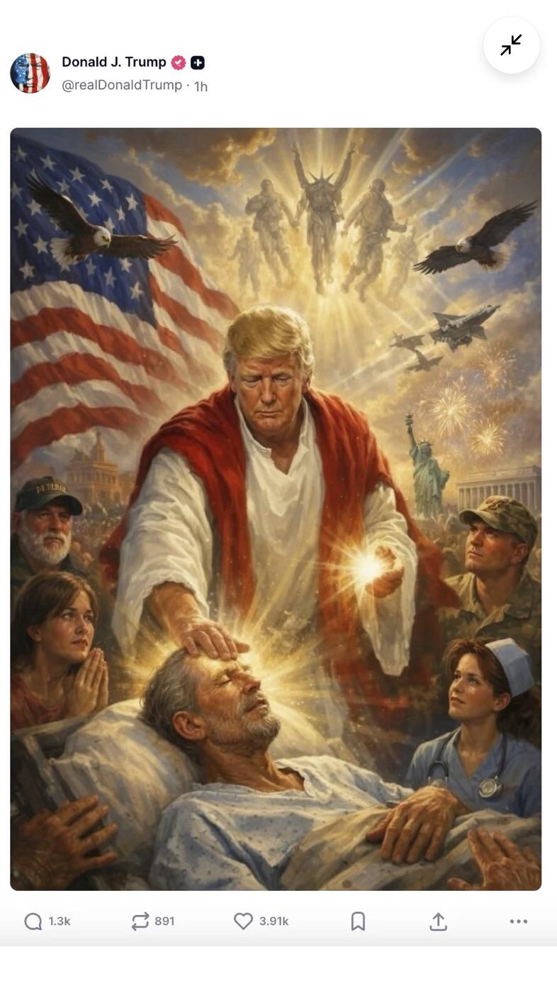 Très largement soutenu par la puissante mouvance évangéliste qui représenterait environ 30 % de son électorat et constituerait sa principale base politique, Donald Trump – ou l’administrateur de son compte personnel Truth Social – aurait dû tourner sept fois les pouces sur le clavier avant de poster une image générée par l’intelligence artificielle représentant le président américain en Jésus-Christ. Image qui, après avoir suscité …